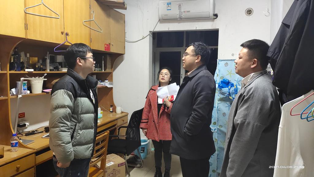 谈话结束后,成华与辅导员深入学生宿舍查看,与学生交流谈心;专门到研究生工作室和实验室,了解研究生夜间学习、研究情况。(文/罗亦欧 图/冯译萱 审/成华)