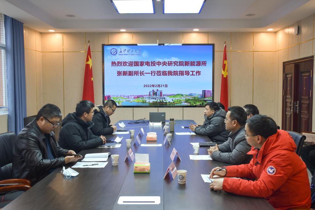 2022年2月22日下午,国家电投中央研究院新能源所副所长张新一行来我院进行技术与合作交流,我院院长陈荐、副院长何建军以及陈建林副教授、唐明珠副教授、曹文广博士和部分研究生等参加。