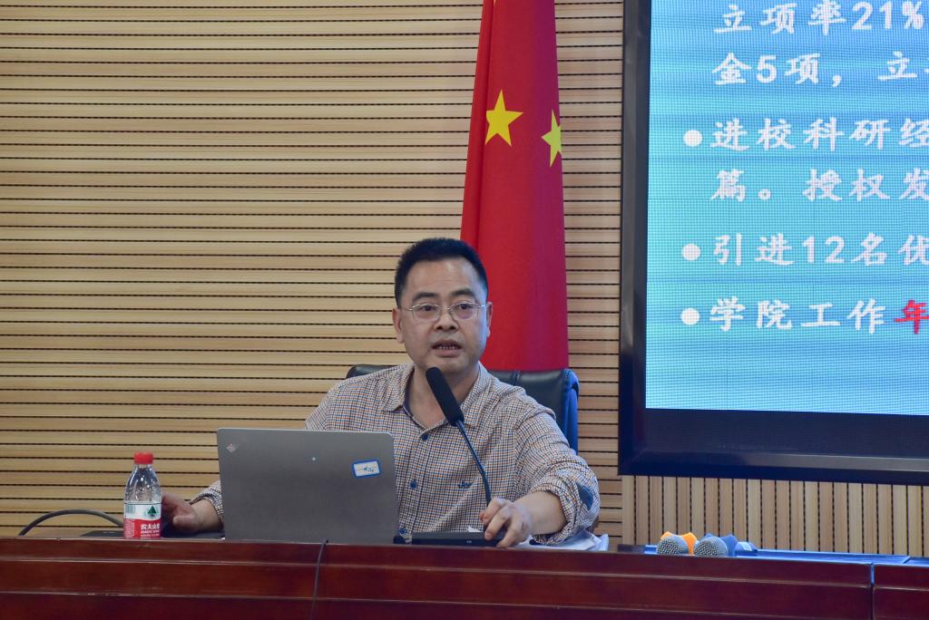 院长陈荐总结了去年学院工作和取得的成绩,宣讲了学院今年工作要点。陈荐表示,学院将重点推动博士点申报、专业建设、科学研究、人才培养、学术队伍建设、配合学校校区功能定位调整、改革教师岗位责任和绩效分配等工作,鼓励教职工在新学期继续为推动学院高质量发展不懈奋斗。