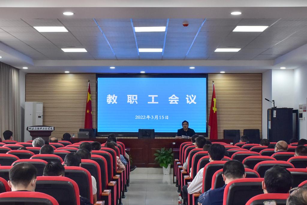 3月15日下午,学院教职工会议在新能源大楼2栋502室召开,学院全体教职工参加会议。会议由学院党委书记成华主持。