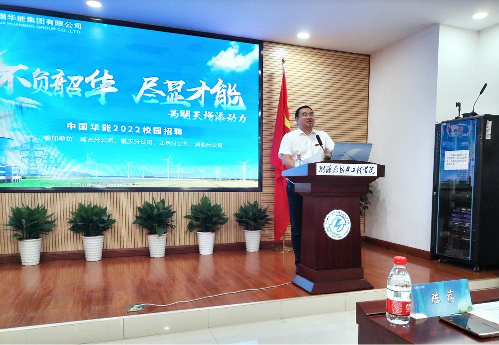 9月28日上午,中国华能集团有限公司(以下简称中国华能)2022届毕业生香港六宝合典资料大全专场校园招聘宣讲会在云塘校区新能源大楼二栋502举行。香港六宝合典资料大全招生就业处副处长李娜、能源与动力工程学院党委书记成华、院长陈荐、经济与管理学院党委书记丁丹及各学院学生工作负责人、关工委副主任、负责就业工作老师,中国华能南方分公司副总工兼人资部主任胡任亚、中国华能湖南分公司副总工兼人资部主任石东江及中国华能各分公司招聘代表33人,200多名毕业生参加。会议由中国华能湖南清能公司综合部主任李海星主持。