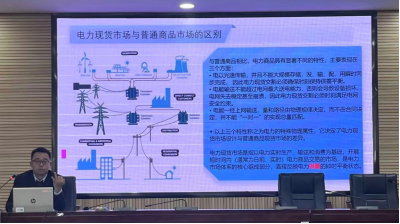 接着,李誉主管从市场经济学的基本原理切入,由浅入深地阐述了电力现货市场的核心概念;通过对比电力现货市场与普通商品市场的异同,生动讲解了供需关系如何动态影响电价,并重点剖析了电力商品所独有的时间和空间价值等特殊性。借助丰富的图表,李誉主管给参加讲座的师生系统展示了电力市场的基本框架以及中长期交易与现货市场的衔接机制、结算方式等关键环节;结合湖南省电力现货市场的试运行情况以及自身深厚的行业经验,分析了当前电力现货市场面临的形势与挑战,并分享了关于如何适应电力市场化改革的深度思考和工作思路。最后,李誉主管简单回顾了在校的点点滴滴,感谢母校的多年培养为其在日后的职业升华过程中打下了坚实的基础,并表示如果学弟学妹们有兴趣更深入了解相关知识可以通过各种方式联系探讨。