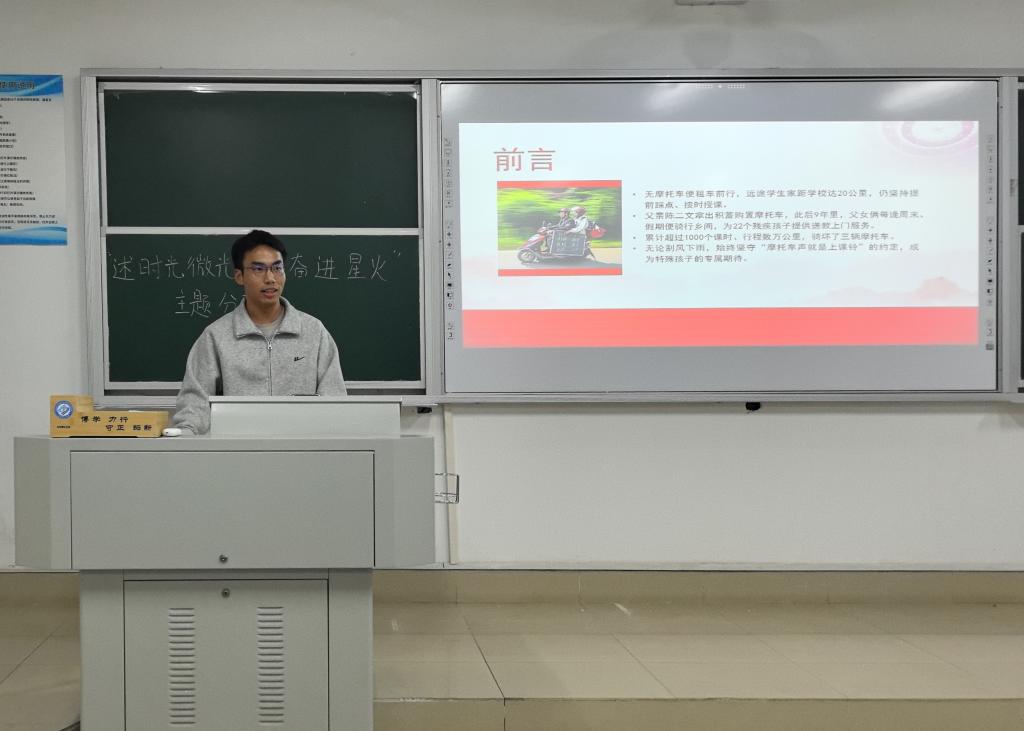 11月11日晚,能动学院第二十三期发展对象分享会在综合教学楼B309教室举行。本次分享会以“述时代微光,燃奋进星火”为主题,第二十三期发展对象全体学员积极参与。