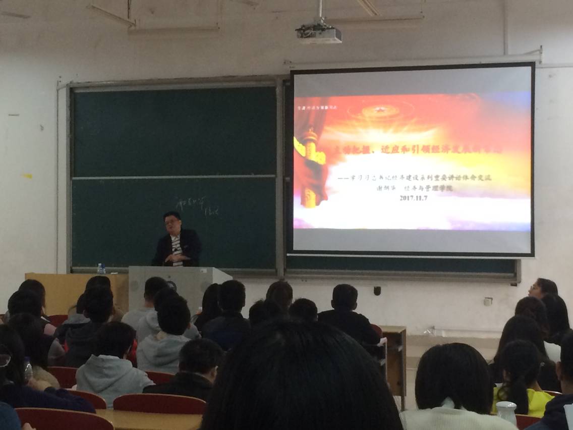 第一节课《主动把握、适应和引领经济发展新常态》是由经管学院的谢朝华老师所讲,经济发展进入新常态,是我国经济发展阶段性特征的必然反映,他指出全面认识和把握新常态,需要从时间和空间的大角度审视我国发展。他从国家战略的高度,对新常态的基本特点、科学内涵作了精辟阐释,对新常态怎么看、如何适应新常态下中国经济“成长的烦恼”发表了看法。要主动适应、把握、引领新常态,经济创新是关键。作为新时代预备党员,我们应该勇做时代的弄潮儿,做知识型、技能型人才。