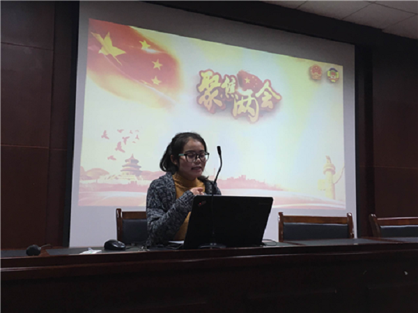 接着,成雯婵同志为大家介绍近来的另一个热点话题聚集区——“两会”。成雯婵带领大家对比学习了近两年的政府工作报告以及接下来的工作重点,这让参会同学看到了中国在共产党的带领下,近年来取得的一系列成果,同时也看出了“革命尚未成功,同志仍需努力”的一些不足,这也是身为学生党员将要为之努力的方向。她还通过提问抢答的方式为同志们普及了有关两会的一些常识问题如“为什么两会要在三月开?”“为什么政协会议比人大早两天开?”等等。