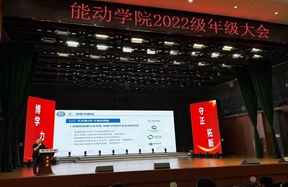 9月12日能源与动力工程学院在云塘校区大会堂组织召开2022级年级大会暨就业动员会。会议由年级辅导员胡雅妮老师主持,就业专干彭博老师主讲,2022级全体学生参加。