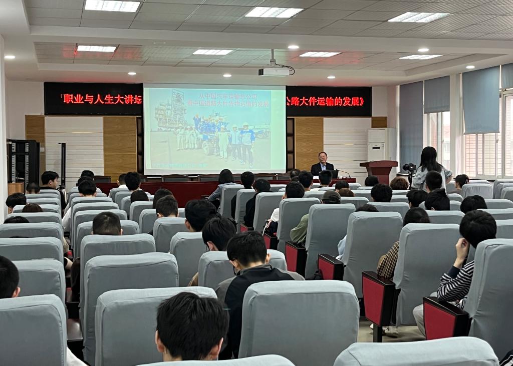 4月26日,中远海运工程物流有限公司技术总监、高级工程师,我校汽车运用工程专业84届校友劳军先生应邀学校“职业与人生大讲坛”,为师生作了《从中国汽车运输总公司看中国公路大件运输的发展》的专题报告。校友中心唐青主任、汽机学院党委书记孔伟红、副书记周小杰、副院长唐宏宾、党委委员伍文广等领导以及100余名汽机、交通学院学生参加了此次讲座。