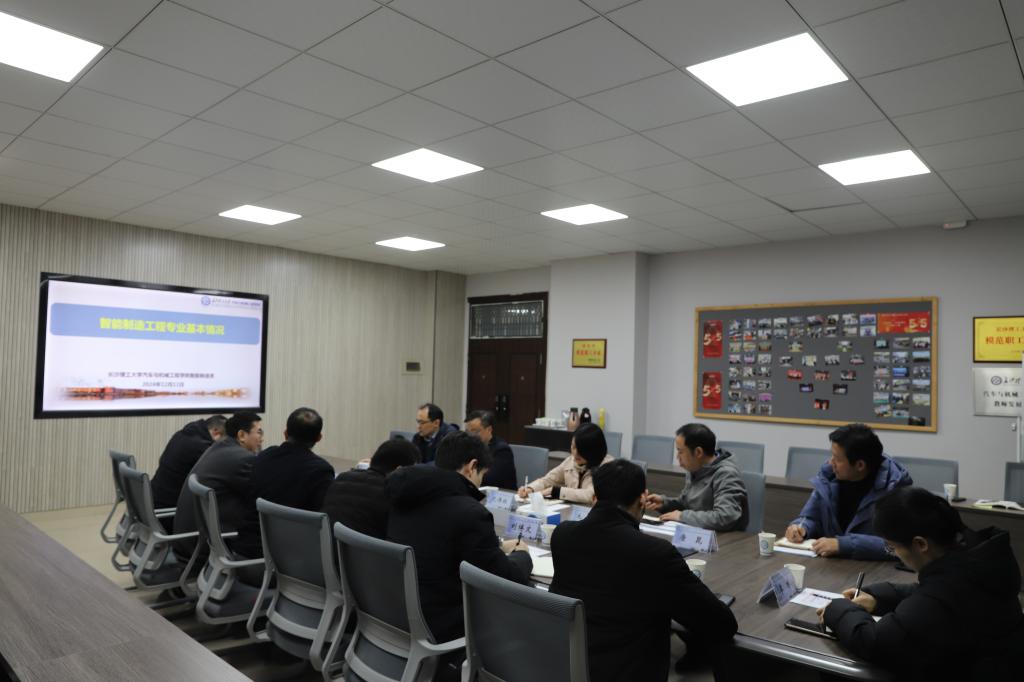 12月11日下午,湖南第一师范学院智能制造学院院长满君丰一行7人来我院开展交流调研。会议在工一B411会议室举行,学院党委书记孔伟红,副院长毛聪、胡宏伟、唐宏宾,智能制造系副主任兼党支部书记唐昆参加了调研座谈会,会议由唐宏宾主持。