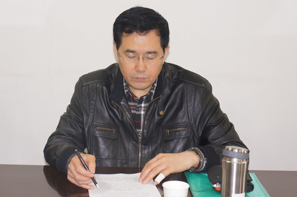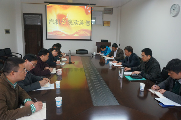 最后,付宏渊书记表示,听完学院的汇报很震撼,对领导班子今天汇报的工作很满意。汽机学院领导班子呈现出了一种想事、想大事、工作有成效,有凝聚力、和谐的氛围。付宏渊书记要求学院在十三五期间学院要重点做好:一、认真思考汽机学院战略目标。提出汽机学院人才培养应关注汽车行业新常态、高等教育发展新常态、关注当前学生对知识的需求、学科定位要准确。二、大处着眼、小处着手,加大教育教学改革,以此提高人才培养质量。要切实处理好师资队伍的问题,制定切实可行的制度,扭转教师的教学观。要加大对课堂的监控,青年教师实行教授一对一导师制。实行优生优就业、特困生优就业,培养学生敢当的的社会责任感。三、进一步强化依法治校的意识,提高科学决策的能力,加强班子队伍建设,加强理论学习、提高领导艺术、增强凝聚力与战斗力。四、全面加强党的建设,让正能量、好声音成为学院发展的主旋律,不让课堂成为老师发牢骚的阵地,让课堂真正成为社会主义核心价值观的阵地。