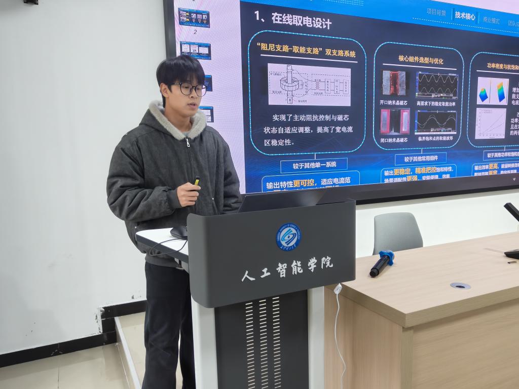 多支队伍依次展示了项目成果:司想团队带来“重大装备集群机器人协同制造数字孪生系统”,宋佳欣团队推出“冰链智创——电网在线取电巡检融冰作业的先行者”,吴晓宇团队呈现“护隐卫士——基于云端协同的废弃物分类系统”,杨涯文团队打造“护航・布标切割检测AI多尺度协同软硬件创新一体化平台”,李家鑫团队推出“智汇百川——AI赋能水电站自主运维的先行者”。选手们同步阐述了项目发展预期、立项准备与推进阶段,介绍了产品功能与市场定位,综合分析出核心竞争力。评委面向不同阶段的创业选手,重点围绕产品市场价值、商业模式、创新点及技术突破潜力进行点评,提出了针对性优化建议。