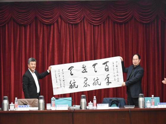 总结汇报及交流座谈会的召开恰逢中交天津航道局有限公司120年华诞,会议正式开始前,我校副校长黄立宏、水利学院常务副院长胡旭跃分别代表学校和学院向中交天津航道局有限公司赠送了“百年天航 世界天航”书法礼品和湘绣礼品。