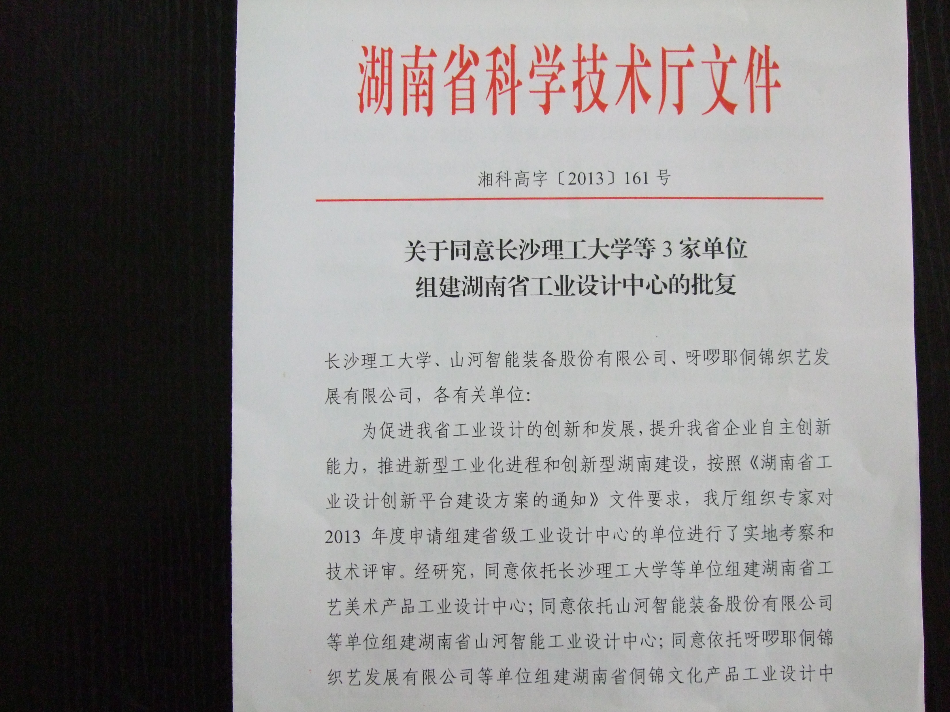 2013年10月21日,湖南省科技厅正式下文批复了我院申报的湖南省工艺美术产品工业设计中心。