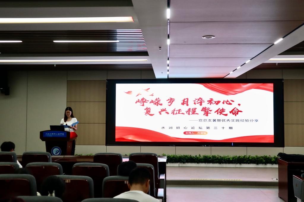 9月18日晚,水利学院在新能源一号楼二楼会议室举办主题为“峥嵘岁月淬初心,复兴征程使命第三十期“水润初心”学习论坛活动,本次活动由本科生第二党支部党员万佳怡同志主持,共79名同志参与。