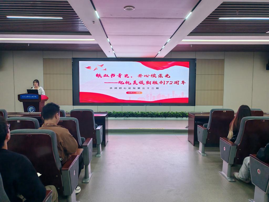 10月23日晚,水利学院在新能源一栋二楼会议室举办第三十二期“水润初心”学习论坛,本期论坛主题为“铁血书青史,丹心续荣光——纪念抗美援朝胜利72周年”。活动由本科生第四党支部魏娜同志主持,共计80余名学生参与。