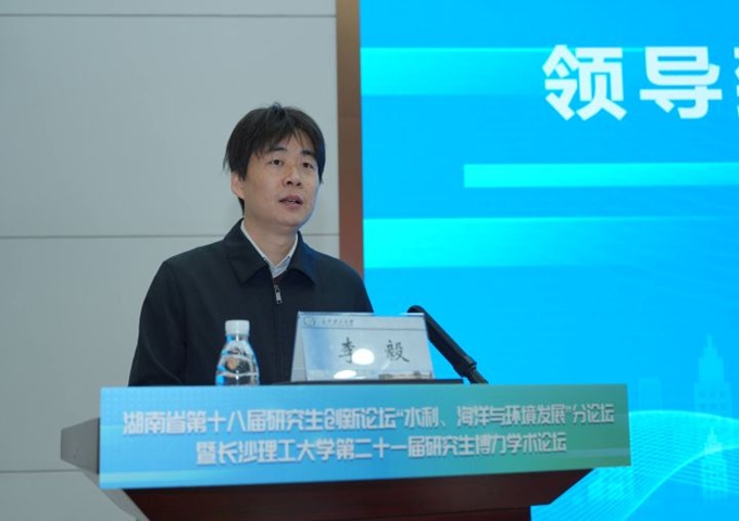 学校研究生院副院长李毅致论坛开幕词。他指出本次论坛聚焦“水利、海洋与环境发展”主题,是推动学科交叉融合、促进研究生创新能力提升的重要平台;希望与会学子能通过深入交流拓宽学术视野,锤炼科研作风,为新时代拔尖创新人才培养注入新动能。