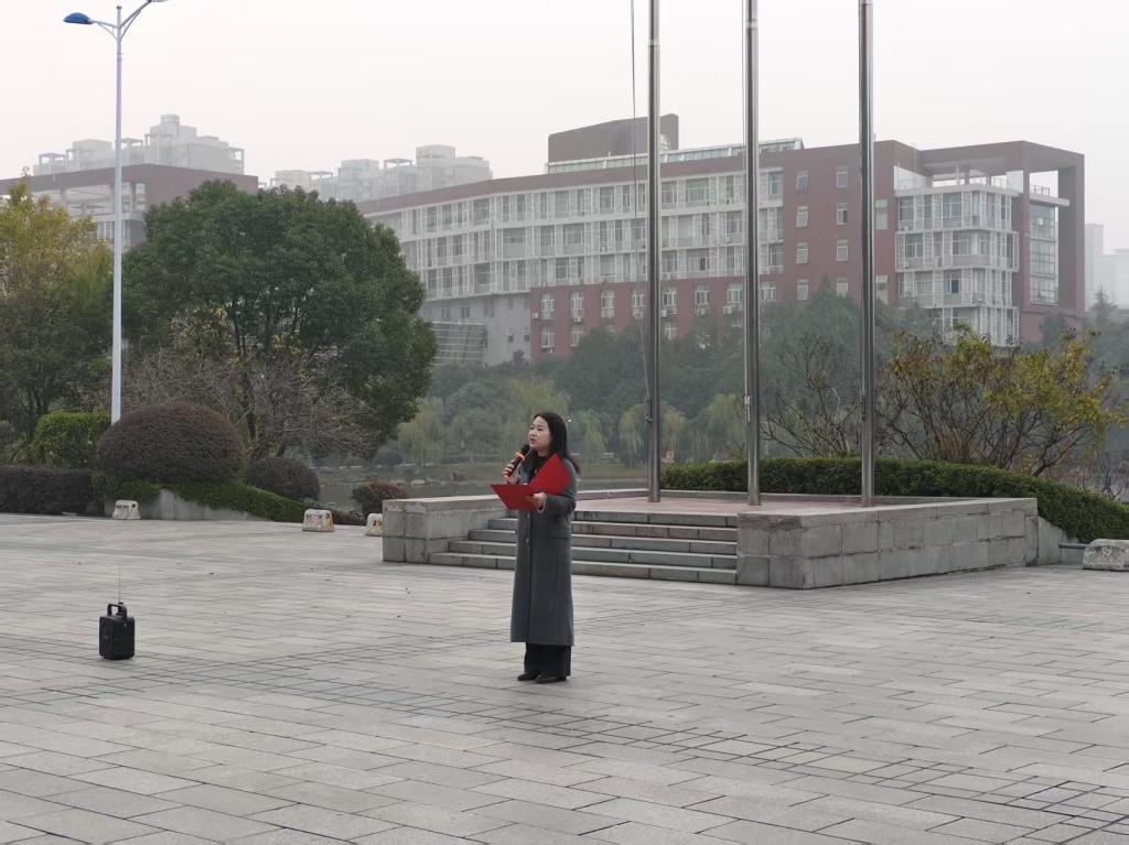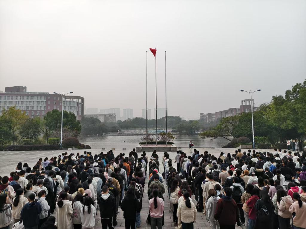 11月17日清晨,食品学院于云塘校区图书馆前坪举行“爱国爱校铸初心,平安校园共守护”主题升旗仪式。新生辅导员胡佳佳老师、国旗班成员以及25级全体学生参与此次升旗仪式。