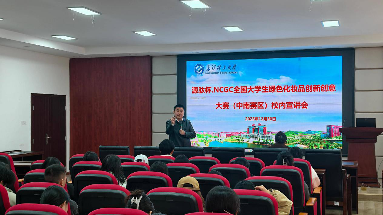 12月30日下午,食品学院开展2025年“源肽杯·第四届全国大学生绿色化妆品创新创意大赛”线下宣讲会,宣讲会特邀教育部全国万名优秀创新创业导师人才库首批导师成忠进行宣讲,食品学院团委书记胡佳佳出席。