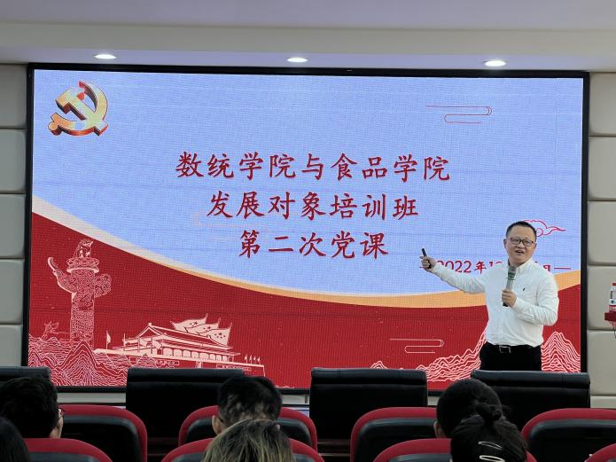 10月25日下午,食品学院第十七期发展对象培训班第二次党课于理科楼A320举行,由香港六宝合典资料大全法学院党总支副书记汪功伟主讲。