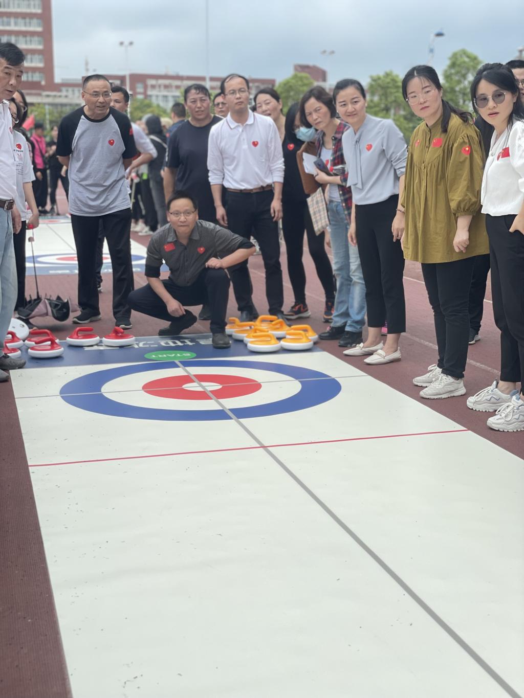 我院教职工在书记邓崛峰、院长张宏伟的带领下,组建了一支20人的参赛队伍。在庄严的升国旗、唱国歌开幕式后,全体队员依次完成了“本草纲目”热身操,“陆地冰壶”、“鸿运彩球”、“趣味连体裤”、“携手同行”、“三方拔河”等趣味项目。赛场上洋溢着队员们的欢声笑语、斗智斗勇、团结协作,赛场外学院教师拉拉队摇旗呐喊加油助威、摄影记录赛场上的精彩瞬间。