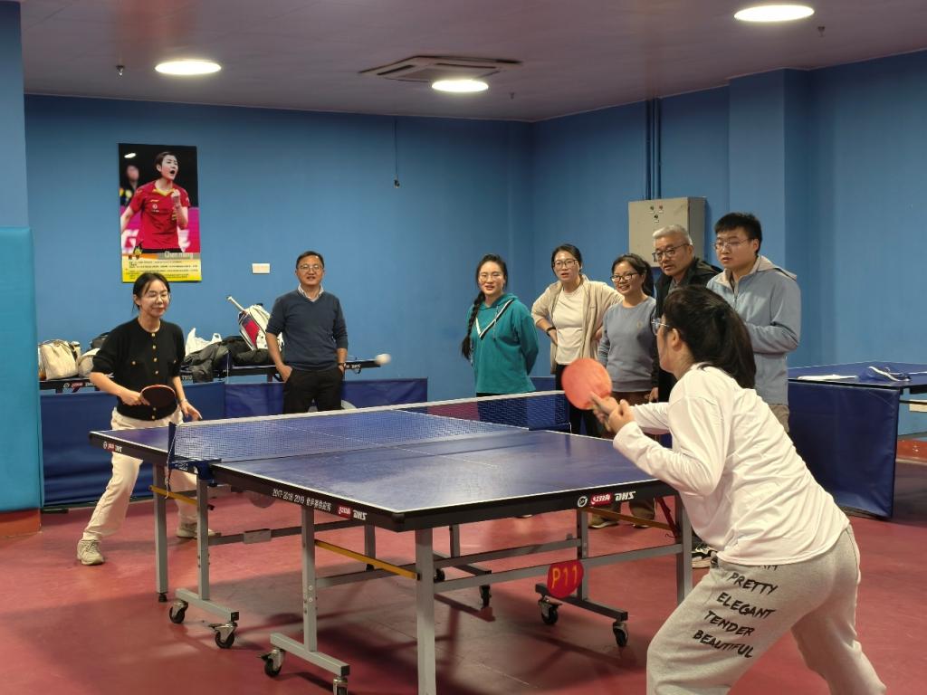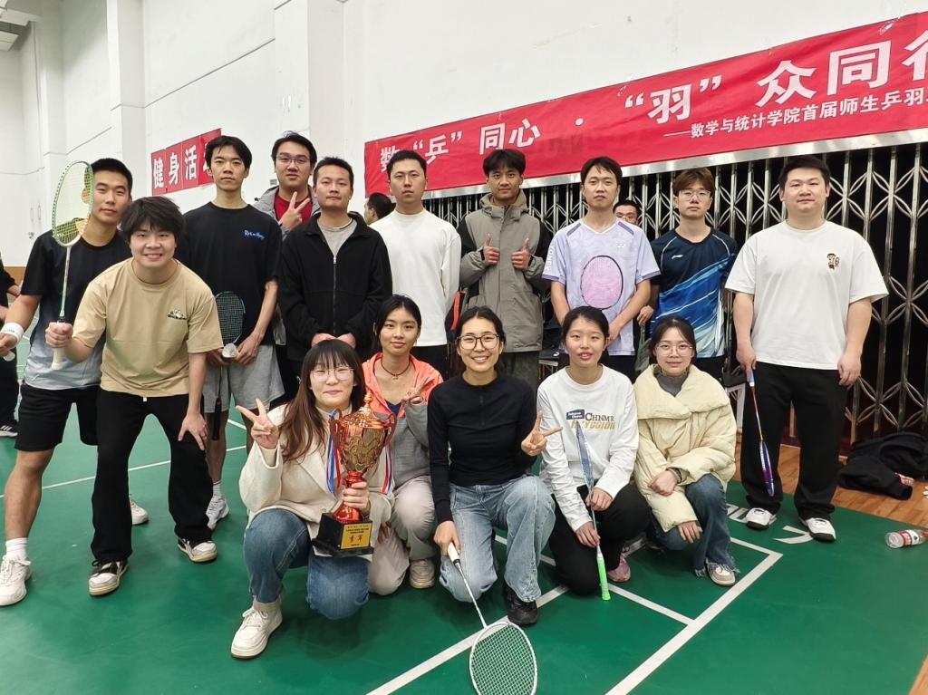 比赛分为乒乓球与羽毛球两个项目。乒乓球赛采用11分制、五局三胜循环赛制,数学组、公数统计组和学生组同台竞技。赛场上,师生选手你来我往,发球抢攻、弧圈对拉等精彩瞬间不断,每一次挥拍都凝聚着智慧与协作。