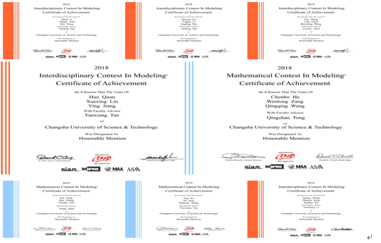 我校学子在2018年美国大学生数学