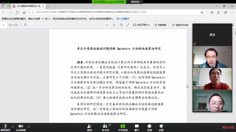 疫情当下,学院国家自然科学基金项目申报工作丝毫没有松懈,学院教师克服困难,积极准备。两轮预评审会的顺利举行将切实提高我院2020年国家自然科学基金项目申报书的质量,为力争基金申报取得好成绩打下了良好基础。