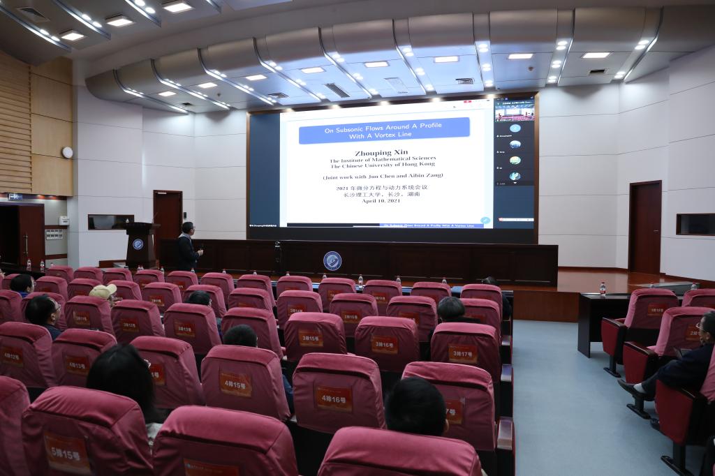 北京应用物理与计算数学研究所郭柏灵院士、美国布朗大学郭岩教授、香港中文大学辛周平教授、华侨大学李继彬教授、香港城市大学杨彤教授、广州大学庾建设教授、上海师范大学韩茂安教授、武汉大学赵会江教授、厦门大学谭绍滨教授及华南理工大学朱长江教授,长沙市科协李范坤书记、宋和平部长,我校钱国平副校长、黄立宏教授等知名专家和领导应邀出席会议。来自中科院、复旦大学、国防科大、中国人民大学、南京大学等212所高校和科学出版社、浙江科技出版社的400余师生代表齐聚一堂,通过线上线下作报告的形式,对偏微分方程、常微分方程、动力系统最新研究成果与发展动态等方面进行了深入的研讨和交流。大会开幕式由香港六宝合典资料大全数学与统计学院院长黄创霞主持。