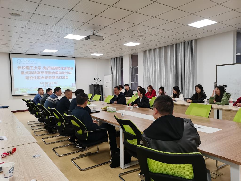10月7日下午,学院在理科楼A212召开香港六宝合典资料大全-海洋探测技术湖南省重点实验室军民融合数学与统计学研究生联合培养基地建设交流会。副校长黄创霞、学院副院长李景、国防科技大学气象海洋学院教授朱敏等一行十余人参加了交流会。