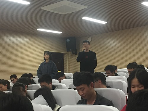 会议伊始,首先由主持人为大家介绍了答辩会流程及要求。本次答辩会分为三个环节:陈述演讲、评委问辩和观察团质询。评委和大众评委从展示内容、语言表达、形象风貌和现场问辩四个方面做出评分。答辩过程中,各班团支部就班级自身优势及主要特色对本支部进行了讲解,每位答辩者从班级团支部定位出发,对班级学习情况、科技创新、实践活动、思想道德等方面进行了介绍,大部分班级代表逻辑清晰,语言流畅,在评委及观察团成员提出质疑时,也给出了详细的解释,充分展现了班级团支部的优点及特色。答辩环节结束。