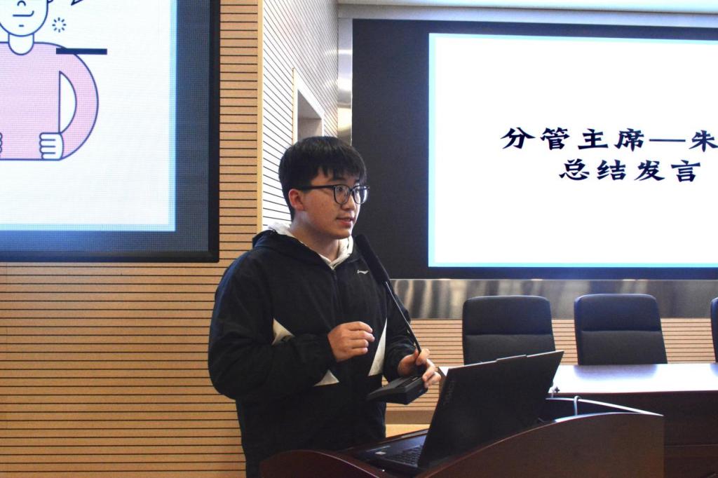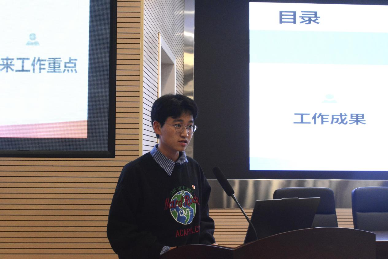 会议伊始,组织部、学习部、勤助部率先登台,细致入微的对上学期工作进行汇报。他们不仅条理清晰地阐述了过往工作的开展情况、取得的成绩,还以深刻自省的态度对工作中存在的问题进行了剖析与总结。随后,马欣宇对上述部门的表现进行了系统汇总,充分肯定了各部门的努力与成果,同时鼓励全体成员保持谦逊好学的态度,在未来的工作中继续脚踏实地、稳步前行。