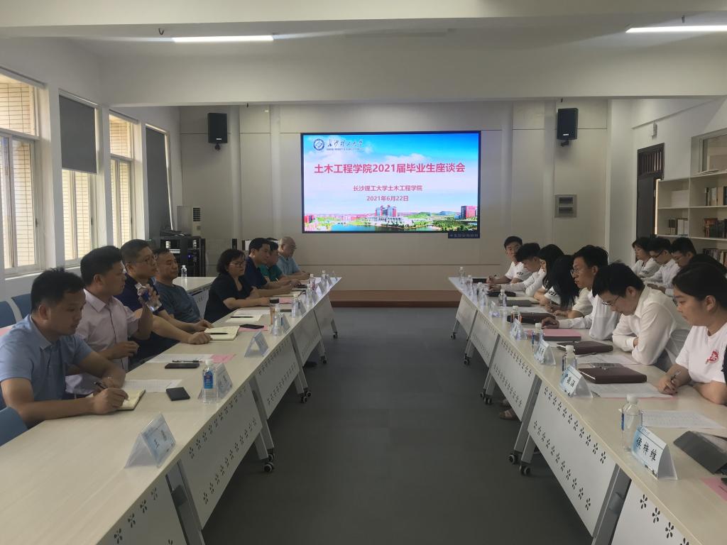 为深入推进党史学习教育,做到在学史力行中贯彻落实学习习近平总书记关于青年成长成才的重要讲话精神、倾听毕业生的意见和建议,6月22日下午,土木工程学院在院学生发展中心举行2021届毕业生代表座谈会。学院党委书记江河、院长王磊,其他在家班子成员,学院各部门负责人及17名毕业生代表参加座谈会。院党委副书记黄阿明主持会议。