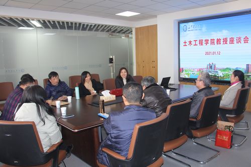 1月12日下午,土木学院在工二A401会议室召开教授代表座谈会,各系室教授代表参加。会议由院党委书记丁丹主持。
