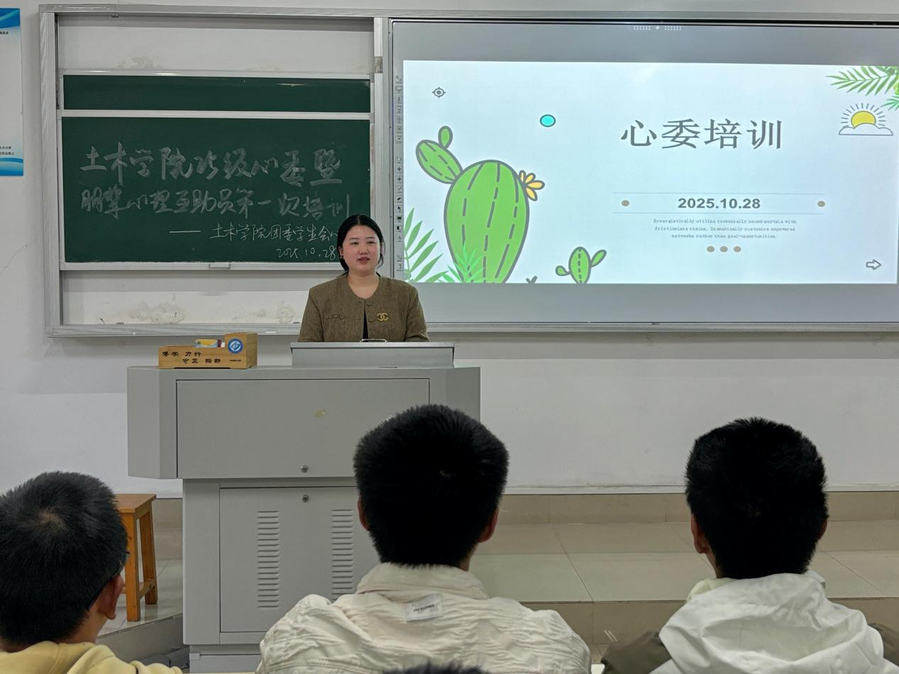 为建设一支高水平的朋辈干部工作队伍,提升心理委员的专业素养与工作能力,帮助他们正确识别心理危机,应对常见心理问题,10月28日,学院在综合教学楼A-202开展2025级心理委员上岗培训,本次培训由心理辅导员黄娟主讲。