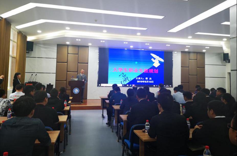蒋杰表示,作为一名大学生,在毕业后选择一家有前景的平台公司最为重要,蒋杰阐述了“什么是职业生涯”,并建议同学们好好思考“我想干什么、我可以干什么、我能干什么”这三个问题,做好“知己、知彼、确立目标、反馈修正”的职业生涯规划。