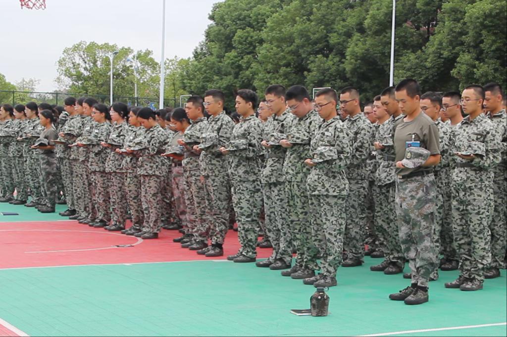 “我和我的祖国,一刻也不能分割……”军训休息间隙,各连队新生整齐列队,以饱满的热情集体唱响《团结就是力量》《歌唱祖国》《我和我的祖国》等爱国歌曲。歌声回荡在训练场上空,展现了新时代青年昂扬向上的精神风貌和赤诚热烈的爱国情怀。同学们在演唱中不仅锤炼了团队协作意识,更在旋律中重温历史、感受祖国发展的伟大征程。上午10时整,全体师生垂首肃立,集体默哀一分钟,共同追忆那段血与火的峥嵘岁月。