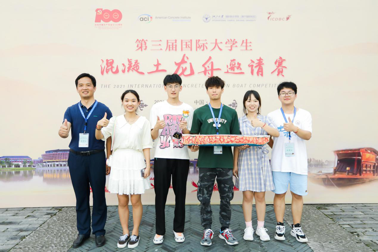 首次受邀参加国际大学生混凝土龙舟赛,团队在备赛过程中得到了李传习教授团队和韩艳教授团队的技术指导和材料支持,团队成员团结协作,努力攻克了船舶CFD模拟分析、混凝土龙舟制作和动力安装操控等技术难题,取得了优异的竞赛成绩,是我院积极推进三全育人、新工科建设和一流专业建设学生优秀代表成果之一。