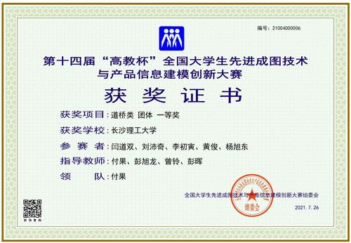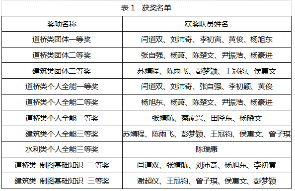 近日,第十四届“高教杯”全国大学生先进成图技术与产品信息建模创新大赛在西南交通大学成功举办,大赛采用选手云端线上参赛,专家线上线下及电脑智能阅卷等全新的竞赛模式。土木方向道桥类、建筑类和水利类三个竞赛类别共22名参赛选手历经校赛、省赛的层层选拔,成功闯入全国决赛。在综合制图基础知识、尺规绘图、三维建模、BIM创新设计等比赛内容后,由闫道双、刘沛奇、李初寅、黄俊、杨旭东组成的团队荣获道桥类团体一等奖,由苏靖程、陈雨飞、彭梦颖、王冠钧、侯惠文组成的团队荣获建筑类团体二等奖,由张自强、杨萧、陈楚文、尹振浩、杨豪进组成的团队荣获道桥类团体二等奖。在个人全能赛项中共荣获个人全能一等奖5项、个人全能二等奖5项、个人全能三等奖11项,其中道桥类总体成绩位列全国第四。在制图基础知识团体赛中共获团体三等奖2项。具体获奖名单如表1所示。