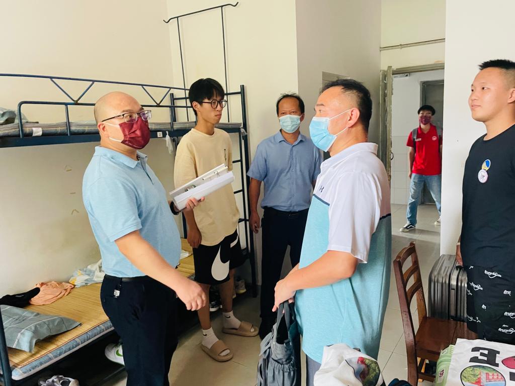 会议结束后,学院领导和全体班主任共同到寝室看望新生。