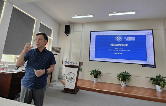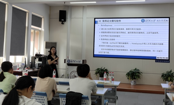 赵冰老师以研究生导师和校期刊社副社长的双重身份向同学们详细地介绍了科技论文的特点、基本要求、各部分的基本写法与撰写格式。赵老师的报告深入浅出、条理清晰、内容丰富,让同学们体会到了完成一篇完整的论文绝非易事。