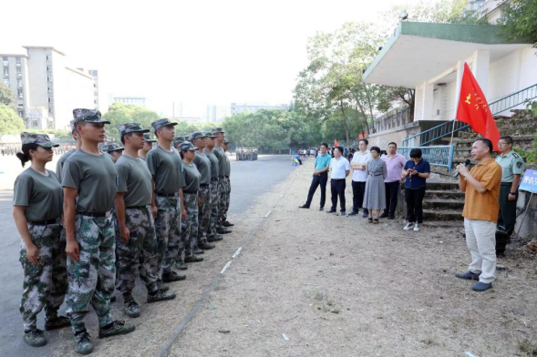 9月5日下午,我院党委书记江河、院长王磊带领学院领导班子成员等一行来到金盆岭校区东田径场军训场看望慰问2022级参训新生和带训教官。期间江河就军训安全事宜提出要求,确保训练安全有序进行。