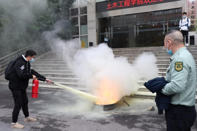 讲座结束后,我院组织师生先后进行了疏散演练和灭火演习。警报声响起后,大家手捂口鼻、腰身半弯,井然有序地从安全通道口撤离“火灾”现场。在灭火实操环节,师生们牢记“一摇二拔三握”原则,从容规范地使用灭火器灭火,真正掌握了使用灭火器的方法和注意事项。