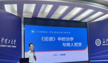 申志彬教授以“《论语》中的治学与做人智慧”为主题,分享了他“挑战0元学《论语》”的故事。他从治学、修行、中庸三个方面详细地解读了《论语》,感悟了《论语》中沉淀千年文化的现实意义。“成功的路上并不拥挤,能开始的人就不多,坚持到最后的更是寥寥无几。”他鼓励大家多进行理论实践,多学习新技能,多进行精力修养,成为一个不可替代的个体。他说:“阅读是心灵的旅行,旅行是身体的阅读。”书籍包罗万象,有五湖四海,有三山五岳。而阅读给予人无限想象,让思维跨越千古,心为所动,情为所感,最终用知识的力量来改变自己。