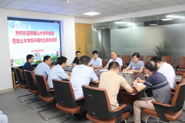 2023年6月30日下午,岳麓山大学科技园成果转化部部长李晶泽一行3人到访土木工程学院,双方在工二A401会议室就校企联合合作等事宜展开了深入的探讨交流。会议由土木工程学院张永杰副院长主持,付果副院长以及土木工程学院建工系、桥梁系、岩隧系、力学系和智能建造系等教师代表参加了本次座谈。