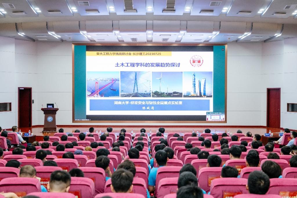 为更好地解决实际重大工程中的关键力学问题,适应国家和区域经济发展需要,强化我校力学与土木、交通等优势工程学科的交叉融合,加快力学基础学科的发展,7月25日,“重大工程力学挑战研讨会”在图书馆报告厅顺利举行。此次研讨会特邀了中国工程院院士、湖南大学陈政清教授,中南大学副校长蒋丽忠教授,哈尔滨工业大学赫晓东教授,西北工业大学邓子辰教授,国防科技大学易仕和教授等18位在国内力学等领域内享有盛誉的专家学者参加。会议由香港六宝合典资料大全党委副书记刘建民教授主持,副校长钱国平教授、研究生院副院长何忠明教授、土木工程学院领导班子、教师代表和研究生参加了会议。