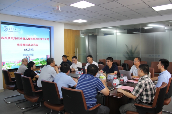 9月6日下午,深圳瑞捷工程咨询股份有限公司高级副总裁吴小玲一行5人来我院走访座谈,院长王磊及副院长韩艳、陈伏彬、张永杰及相关专业教师参与了本次交流,会议由副院长曾铃主持。