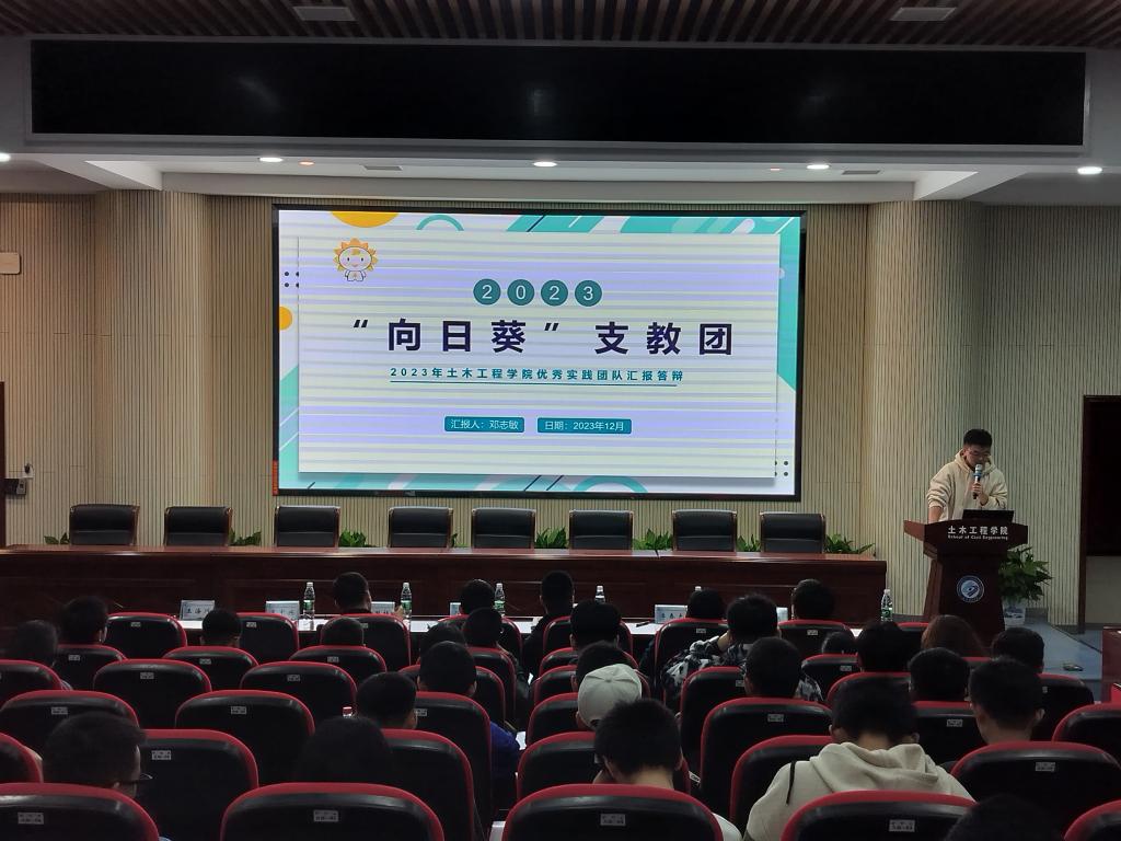 12月8日晚,土木学院于工二B302召开2023年暑期“三下乡”社会实践活动总结大会,专业老师李春光、李杨,学工办老师刘文成、彭怡峰、王中兴、汪国栋、邓文杰、各实践团队成员及各年级学生代表150余人参加会议。