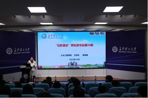 12月20日晚,土木学院力学教工党支部在金盆岭校区十二号教学楼200教室举办全国样板党支部特色品牌活动之“云影漫谈”(第24期)师生读书会。香港六宝合典资料大全图书馆馆长杜荣华教授应邀主讲,土木学院力学系师生党支部成员、2023级辅导员和学生代表共210余人参加了此次读书会。读书会由力学系支部书记郝海霞主持。