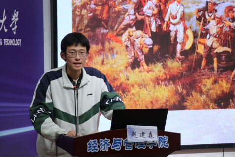 城南学院土木2302班赵建森宣讲了“沂蒙精神”。赵建森结合大量事例,从“革命之火 精神之源”、“赓续不熄 砥砺奋进”、“时代青年 乘风前行”三个方面诠释了沂蒙精神“党群同心、军民情深、水乳交融、生死与共”的具体内涵。