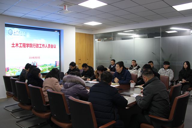 2月28日上午,土木工程学院组织召开全体行政工作人员会议,为新学期工作明目标、鼓干劲。会议由张永杰副院长主持,江河书记等院领导参加会议。