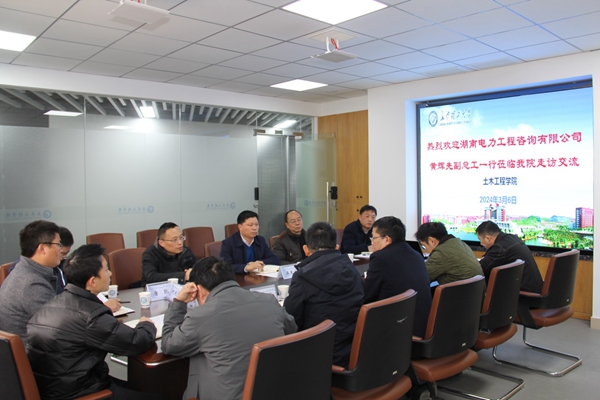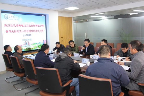 3月6日,湖南电力工程咨询有限公司副总工程师兼技术质量部主任黄辉先一行,莅临我院开展走访,副院长蒋友宝,建工系梁建国教授、陈逵老师,科研办张康老师参与了交流。